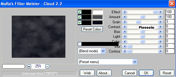 Effetti>Plugins>Mura's Meister - Cloud, con i settaggi precedenti.