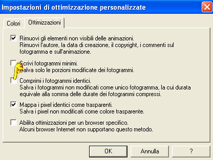 Fai attenzione: Nell'animazione ci sono due fotogrammi identici; per questo motivo, se le tue impostazioni di salvataggio sono impostate con la spunta su "Comprimi i fotogrammi identici", alla fine del salvataggio ti ritroverai 3 fotogrammi.