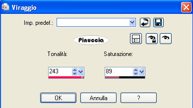Regola>Tonalità e Saturazione>Viraggio e trascrivi i valori annotati nelle rispettive caselle: