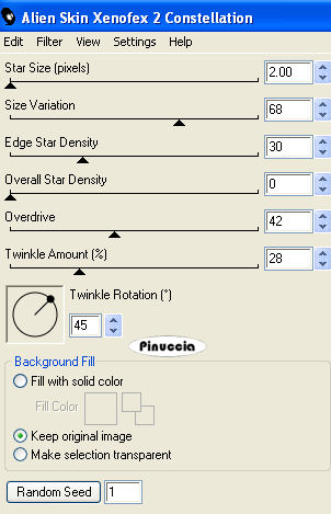 Ripeti l'Effetto Constellation, con gli stessi settaggi, ma cliccando una volta su Random Seed.