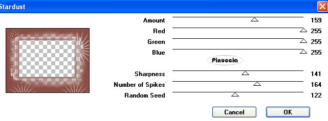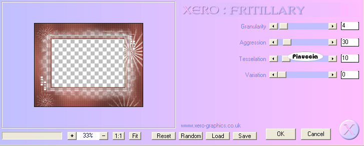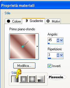 qui puoi trovare qualche risposta ai tuoi dubbi. Se l'argomento che ti interessa non è presente, ti prego di segnalarmelo. Questo tutorial è stato creato con PSP 9, ma può essere eseguito anche con le altre versioni di PSP. Per tradurlo, ho usato PSP X. Questo tutorial è una creazione di ©Sille e non può essere copiato su altri siti nè essere offerto per il download. Lo stesso vale per la mia traduzione. Occorrente: Materiale qui Per il tube grazie Margit. Metti la maschera gh_grungeframe10mask_bunnisatticdotcom nella cartella Maschere. Ti servirà anche la maschera 20-20. Se non ce l'hai clicca qui Filtri: Xero - Fritillary qui VM Natural - Stardust qui Graphics Plus qui 1. Apri una nuova immagine trasparente 650 x 500 pixels. Scegli due colori e imposta il colore chiaro come colore di primo piano, e il colore scuro come colore di sfondo. Passa il colore di primo piano a Gradiente di primo piano/sfondo con i seguenti settaggi: ![]() Regola>Sfocatura>Sfocatura gaussiana - raggio 20. ![]() Livelli>Nuovo livello raster. Riempi il livello con il colore scuro di sfondo.Livelli>Carica/Salva maschera>Carica maschera da disco. Cerca e carica la maschera gh_grungeframe10mask_bunnisatticdotcom: ![]() Livelli>Unisci>Unisci gruppo. Abbassa l'opacità di questo livello al 60%. Effetti>Plugins>VM Natural - Stardust: sperimenta, se vuoi, il settaggio "Amount". Questo il mio: ![]() Effetti>Plugins>Graphics Plus - Cross Shadow: ![]() Effetti>Plugins>Xero - Fritillary: ![]() Effetti>Plugins>FM Tile Tools - Blend Emboss, con i settaggi standard. ![]() 2. Apri il tube Cal-quis-mistplum11102008 e vai a Modifica>Copia. Torna al tuo lavoro e vai a Modifica>Incolla come nuovo livello. Annota i valori di tonalità (H) e saturazione (S) del tuo colore scuro di sfondo: ![]() Regola>Tonalità e saturazione>Viraggio, e trascrivi i valori nelle relative caselle. ![]() Livelli>Disponi>Sposta giù. 3. Apri il tube del viso "MMDesignz_okt08_021" e vai a Modifica>Copia. Torna al tuo lavoro e vai a Modifica>Incolla come nuovo livello. Livelli>Carica/Salva maschera>Carica maschera da disco. Cerca e carica la maschera 20-20: ![]() Livelli>Unisci>Unisci gruppo. Livelli>Duplica. Livelli>Unisci>Unisci giù. Sposta il tube a sinistra, nella maschera.4. Attiva il livello superiore. Livelli>Nuovo livello raster. Selezione>Seleziona tutto. Selezione>Modifica>Contrai - 20 pixels. ![]() Selezione>Inverti. Cambia i settaggi del gradiente. ![]() Riempi la selezione con il gradiente.Regola>Aggiungi/Rimuovi disturbo>Aggiungi disturbo: ![]() Effetti>Plugins>VM Natural - Stardust, con i settaggi precedenti. ![]() Effetti>Plugins>FM Tile Tools - Blend Emboss, con i settaggi standard. Selezione>Inverti. Effetti>Effetti 3D>Ritaglio: ![]() Selezione>Deseleziona. 5. Attiva nuovamente il tube "cal-quis-mistplum" e vai a Modifica>Copia. Torna al tuo lavoro e vai a Modifica>Incolla come nuovo livello. Immagine>Ridimensiona, al 50%, tutti i livelli non selezionato. Sposta il tube nell'angolo in basso a sinistra.6. Aggiungi un testo o un bel pennello sull'immagine. Non dimenticare il tuo nome e/o il tuo watermark. 7. Immagine>Aggiungi bordatura, 1 pixel, simmetriche, con il colore nero. Salva in formato jpg. Se hai problemi o dubbi, o trovi un link non funzionante, o anche soltanto per un saluto, scrivimi. 26 Ottobre 2008 |