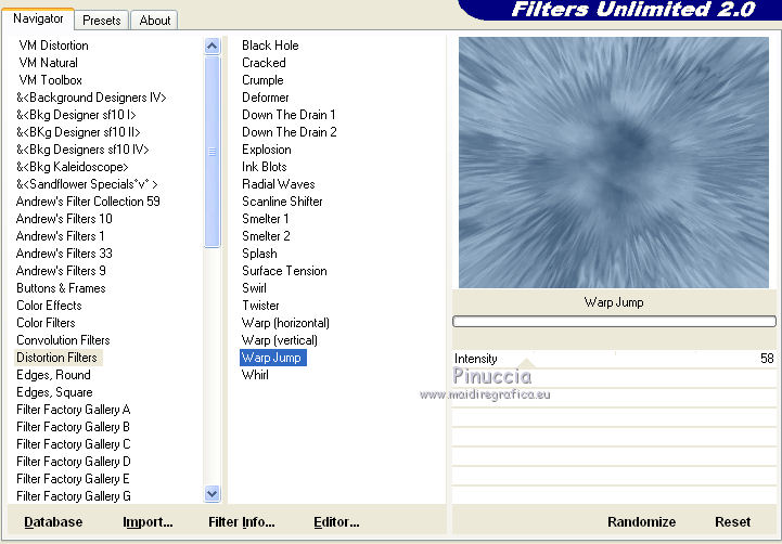 Effetti>Plugins>Filters Unlimited - Distortion Filters - Warp Jump.