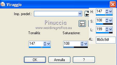 Regola>Tonalità e saturazione>Viraggio e trascrivi i valori annotati nelle rispettive caselle.