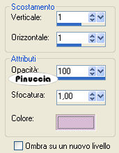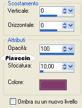 Effetti>Effetti 3D>Sfalsa ombra, con i seguenti settaggi, con il colore scuro.