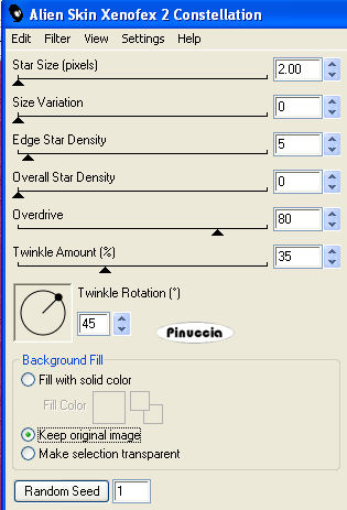 Ripeti l'Effetto Constellation, con gli stessi settaggi, ma cliccando una volta su Random Seed.