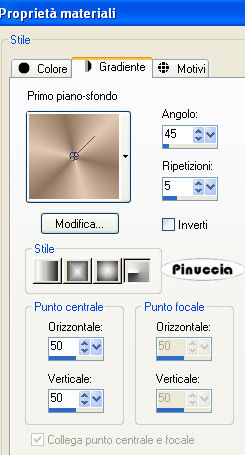 Passa il colore di primo piano a Gradiente di primo piano/sfondo, con i seguenti settaggi: