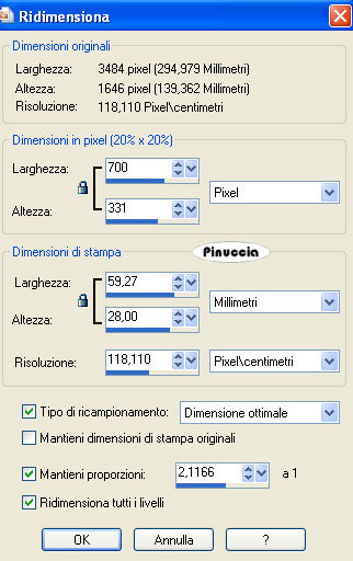 Immagine>Ridimensiona, a 700 pixels di larghezza, tutti i livelli selezionato.