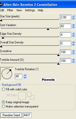 Ripeti l'Effetto Constellation, con gli stessi settaggi, ma cliccando una volta su Random Seed.