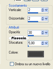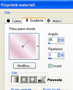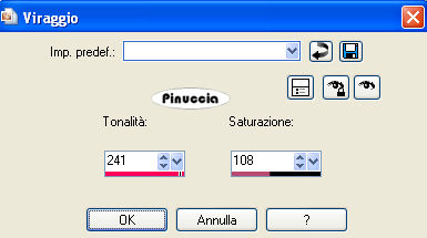 qui puoi trovare qualche risposta ai tuoi dubbi. Se l'argomento che ti interessa non è presente, ti prego di segnalarmelo. Questo tutorial è stato creato con PSP 9, ma può essere eseguito anche con le altre versioni di PSP. Per tradurlo, ho usato PSP X. Questo tutorial è una creazione di ©Sille e non può essere copiato su altri siti nè essere offerto per il download. Lo stesso vale per la mia traduzione. Grazie ai creatori dei tubes che mettono a disposizione il loro lavoro in vari gruppi di condivisione. Rispetta il lavoro degli autori, non cambiare il nome del file e non cancellare il watermark. Occorrente: Materiale qui Filtri: FM Tile Tools - Blend Emboss qui Graphics Plus - Cross Shadow qui Xero - Porcelain qui 1. Apri una nuova immagine trasparente 800 x 650 pixels. Scegli due colori dai tuoi tubes. Imposta il colore scuro come colore di primo piano, e il colore chiaro come colore di sfondo. Passa il colore di primo piano a Gradiente. ![]() Riempi l'immagine trasparente con il gradiente.Regola>Sfocatura>Sfocatura gaussiana - raggio 30 ![]() Apri il tube con le rose "Chrismist vict mar33" e vai a Modifica>Copia. Torna al tuo lavoro e vai a Modifica>Incolla come nuovo livello. Sposta il tube in alto a destra.Apri il tube KaraT5105 e vai a Modifica>Copia. Torna al tuo lavoro e vai a Modifica>Incolla come nuovo livello. Sposta il tube in alto a sinistra.Cambia la modalità di miscelatura di questo livello in Luce netta. Effetti>Plugins>FM Tile Tools - Blend Emboss, con i settaggi standard. ![]() 2. Apri il tube con le chiavi "Chrismist keys4" e vai a Modifica>Copia. Torna al tuo lavoro e vai a Modifica>Incolla come nuovo livello. Immagine>Ridimensiona, al 70%, tutti i livelli non selezionato. Abbassa l'opacità di questo livello al 50%. Sposta il tube sul cuore.3. Apri il tube con la lettera "StormKloud 2090 - Afternoon Tea" e vai a Modifica>Copia. Torna al tuo lavoro e vai a Modifica>Incolla come nuovo livello. Immagine>Ridimensiona, al 60%, tutti i livelli non selezionato. Prendi nota dei valori di Tonalità (H) e Saturazione (S) del colore scuro. Il mio: ![]() Regola>Tonalità e saturazione>Viraggio, e trascrivi i valori annotati nelle rispettive caselle. ![]() Sposta la lettera nell'angolo in basso a sinistra.Apri il tube con l'orologio "Strange Clock" e vai a Modifica>Copia. Torna al tuo lavoro e vai a Modifica>Incolla come nuovo livello. Immagine>Ridimensiona, all'80%, tutti i livelli non selezionato. Regola>Tonalità e Saturazione>Viraggio, con i settaggi usati per la lettera. Effetti>Plugins>FM Tile Tools - Blend Emboss, con i settaggi standard. 4. Apri il tube dell'angelo "fee1 Maryarts08" e vai a Modifica>Copia. Torna al tuo lavoro e vai a Modifica>Incolla come nuovo livello. Spostalo in basso a destra.Livelli>Duplica. Livelli>Unisci>Unisci giù. se stai usando un altro tube, non mist, questo passaggio non è necessario 5. Apri il tube della carta "Thiara13-gaestebuch rosen" e vai a Modifica>Copia. Torna al tuo lavoro e vai a Modifica>Incolla come nuovo livello. Immagine>Ridimensiona, al 70%, tutti i livelli non selezionato. Regola>Tonalità e saturazione>Viraggio, con i settaggi precedenti. Sposta il tube in basso (vedi il mio esempio).Regola>Messa a fuoco>Metti a fuoco. Effetti>Effetti 3D>Sfalsa ombra: ![]() Attiva lo strumento Testo e scrivi un testo sulla carta.Livelli>Unisci>Unisci visibile. 6. Effetti>Plugins>Xero - Porcelain, con i settaggi standard. ![]() Regola>Luminosità e contrasto>Nitidezza: ![]() 7. Livelli>Duplica. Immagine>Ridimensiona, al 90%, tutti i livelli non selezionato. Effetti>Effetti 3D>Sfalsa ombra: ![]() Ripeti l'Effetto Sfalsa ombra, invertendo i valori verticali e orizzontali. ![]() 8. Attiva il livello inferiore. Regola>Sfocatura>Sfocatura gaussiana - raggio 25. ![]() Effetti>Plugins>Graphics Plus - Cross Shadow: ![]() 9. Apri il tube dell'angolo "photo edge 3" e vai a Modifica>Copia. Torna al tuo lavoro e vai a Modifica>Incolla come nuovo livello. Immagine>Ridimensiona, 3 volte al 50%, tutti i livelli non selezionato. Effetti>Effetti 3D>Sfalsa ombra: ![]() Spostalo nell'angolo in basso a destra.Livelli>Duplica. Immagine>Rifletti. Livelli>Unisci>Unisci giù. Livelli>Duplica. Immagine>Capovolgi. Aggiungi il tuo nome e/o il tuo watermark. Livelli>Unisci>Unisci tutto e salva in formato jpg. Una variante con la foto della mia mamma: ![]() Se hai problemi o dubbi, o trovi un link non funzionante, o anche soltanto per un saluto, scrivimi. 14 Febbraio 2009 |