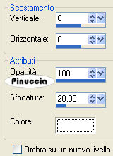 Effetti>Effetti 3D>Sfalsa ombra, con i seguenti settaggi, colore bianco: