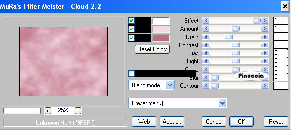 Una volta impostati i colori, premere il tasto Reset serve per cambiare l'aspetto delle nuvole