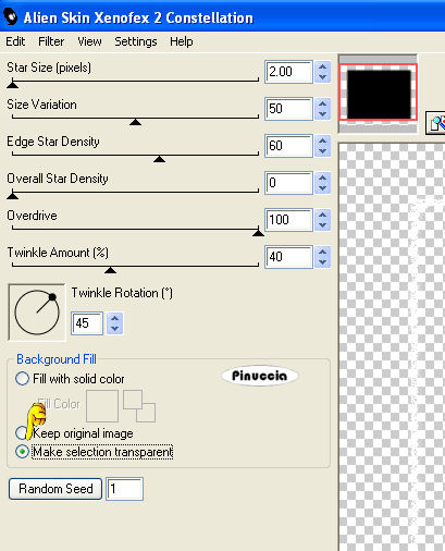 Effetti>Plugins>Alien Skin Xenofex - Constellation - "make selection transparent" selezionato.