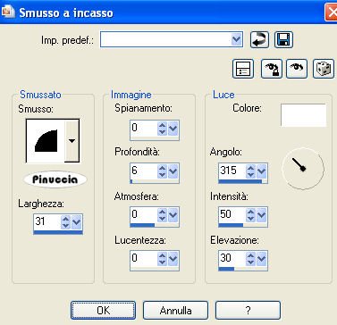 Effetti>Effetti 3D>Smusso a incasso, con i settaggi precedenti.