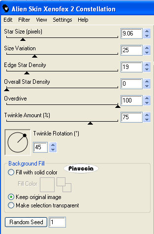 Ripeti l'Effetto Constellation, con gli stessi settaggi, ma cliccando una volta su Random Seed.