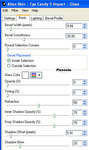 Effetti>Plugins>Alien Skin Eye Candy 5 Impact - Glass, con i seguenti settaggi: