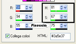 Prendi nota dei valori di tonalità (H) e saturazione (S) del tuo colore scuro; il mio: