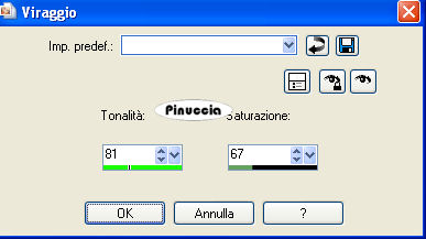 Regola>Tonalità e Saturazione>Viraggio, con i settaggi precedenti.