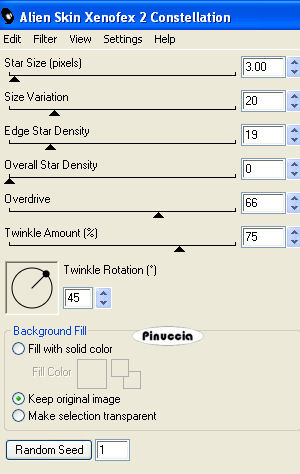 Ripeti l'Effetto Constellation, con gli stessi settaggi, ma cliccando una volta su Random Seed.