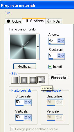 Passa il colore di primo piano a Gradiente di primo piano/sfondo con i seguenti settaggi: