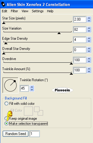 Ripeti l'Effetto Constellation, cliccando una volta su Random Seed.