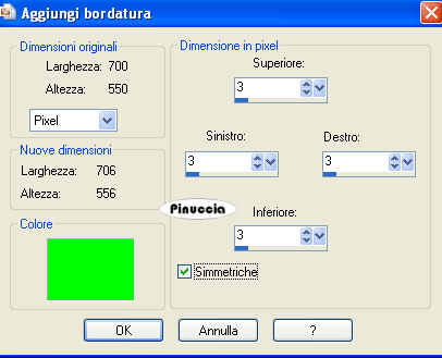 Immagine>Aggiungi bordatura, 3 pixels, simmetriche, con un colore qualsiasi purchè non presente nell'immagine: