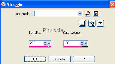 Regola>Tonalità e saturazione>Viraggio, con i settaggi precedenti.