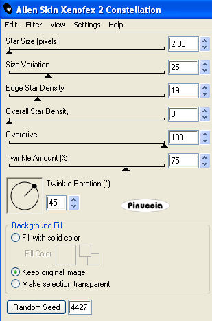 Ripeti l'Effetto Constellation, con gli stessi settaggi, ma cliccando una volta su Random Seed.