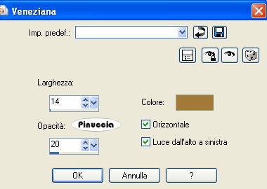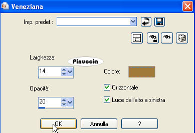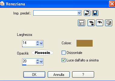 Ripeti l'Effetto Veneziana, selezionando anche Luce dall'alto a sinistra: