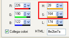 Prendi nota dei valori di tonalità (H) e saturazione (S) del tuo colore scuro. Il mio: