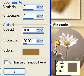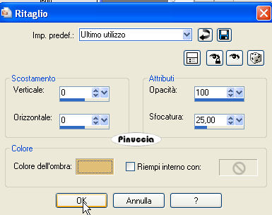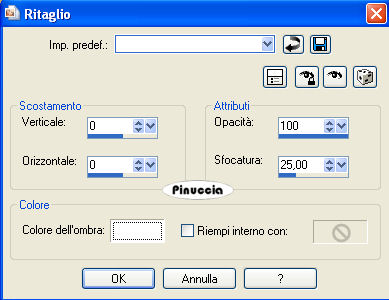 Effetti>Effetti 3D>Sfalsa ombra, con i settaggi precedenti (per il colore dell'ombra ho scelto dal mio lavoro un colore grigio scuro).
