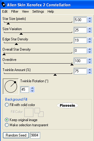Ripeti l'Effetto Constellation, con gli stessi settaggi, ma cliccando una volta su Random Seed.