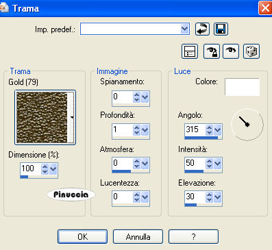 Effetti>Effetti di trama>Trama - seleziona la trama Gold(79), con i seguenti settaggi: