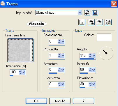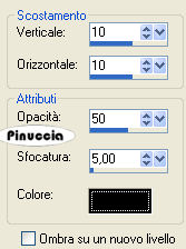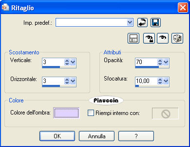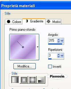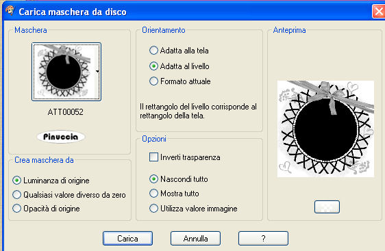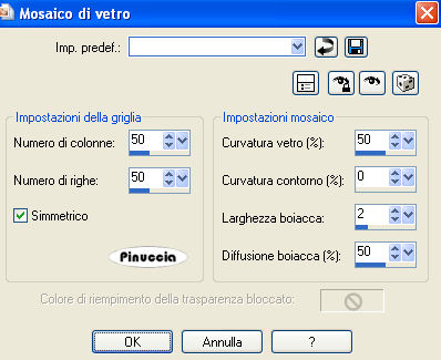 qui puoi trovare qualche risposta ai tuoi dubbi. Se l'argomento che ti interessa non č presente, ti prego di segnalarmelo. Questo tutorial č stato creato con PSP 9, ma puņ essere eseguito anche con le altre versioni di PSP. Per tradurlo, ho usato PSP X. Questo tutorial č una creazione di ©Sille e non puņ essere copiato su altri siti nč essere offerto per il download. Lo stesso vale per la mia traduzione. Grazie ai creatori dei tubes che mettono a disposizione il loro lavoro in vari gruppi di condivisione. Rispetta il lavoro degli autori, non cambiare il nome del file e non cancellare il watermark. Occorrente: Materiale qui Filtri: FM Tile Tools - Blend Emboss qui Graphics Plus - Cross Shadow qui Metti la maschera "ATT00052" nella cartella Maschere. 1. Apri una nuova immagine trasparente 500 x 500 pixels. Scegli due colori dai tuoi tubes. Imposta il colore chiaro come colore di primo piano, e il colore scuro come colore di sfondo. Passa il colore di primo piano a Gradiente. ![]() Riempi l'immagine trasparente con il gradiente.Effetti>Effetti di trama>Trama - seleziona la trama Tela trama fine: se stai PSP X2, č la trama Corel_15_014 ![]() 2. Livelli>Nuovo livello raster. Riempi il livello con il colore scuro di sfondo.Livelli>Carica/Salva maschera>Carica maschera da disco. Cerca e carica la maschera ATT00052: ![]() Livelli>Unisci>Unisci gruppo. Effetti>Effetti 3D>Sfalsa ombra: ![]() Effetti>Plugins>Graphics Plus - Cross Shadow, con i settaggi standard. ![]() Effetti>Plugins>FM Tile Tools - Blend Emboss, con i settaggi standard. ![]() 3. Apri il tube "easter(6)-misted by dragonblu" e vai a Modifica>Copia. Torna al tuo lavoro e vai a Modifica>Incolla come nuovo livello. Immagine>Ridimensiona, all'80%, tutti i livelli non selezionato. Sposta questo livello sotto il livello della maschera. Posiziona il tube nell'area della maschera.Attiva nuovamente il livello della maschera. Attiva lo strumento Bacchetta magica ![]() e clicca al centro della maschera. Selezione>Modifica>Espandi - 5 pixels. Selezione>Inverti. Attiva nuovamente il livello del tube e premi sulla tastiera il tasto CANC ![]() Selezione>Deseleziona. ![]() 4. Attiva il livello superiore. Apri il tube dell'uovo "Mtm Mist 185-27 sept 2007" e vai a Modifica>Copia. Torna al tuo lavoro e vai a Modifica>Incolla come nuovo livello. Immagine>Rifletti. Immagine>Ridimensiona, al 50%, tutti i livelli non selezionato. Sposta il tube in basso a destra.Effetti>Effetti 3D>Sfalsa ombra: ![]() 5. Apri il tube del ramo "kpussywillow2" e vai a Modifica>Copia. Torna al tuo lavoro e vai a Modifica>Incolla come nuovo livello. Immagine>Ridimensiona, al 70%, tutti i livelli non selezionato. Sposta il ramo nell'angolo in alto a sinistra.Effetti>Effetti 3D>Sfalsa ombra: ![]() Livelli>Duplica. Immagine>Rifletti. Attiva lo strumento Testo e scrivi un testo sull'immagine.6. Livelli>Unisci>Unisci tutto. Immagine>Aggiungi bordatura, 10 pixels, simmetriche, con un colore qualsiasi, purchč contrastanti con quelli della tua tag. Seleziona questo bordo con la bacchetta magica ![]() Cambia i settaggi del gradiente: ![]() Riempi la selezione con il gradiente.Effetti>Plugins>Graphics Plus - Cross Shadow, 2 volte, con i settaggi standard. ![]() Effetti>Effetti di trama>Mosaico di vetro: ![]() Selezione>Inverti. Effetti>Effetti 3D>Ritaglio, con i seguenti settaggi, con il colore chiaro. ![]() Ripeti l'Effetto Ritaglio, cambiando verticale e orizzontale con -3. 7. Aggiungi il tuo nome e/o il tuo watermark e salva in formato jpg. ![]() Se hai problemi o dubbi, o trovi un link non funzionante, o anche soltanto per un saluto, scrivimi. 14 Febbraio 2009 |