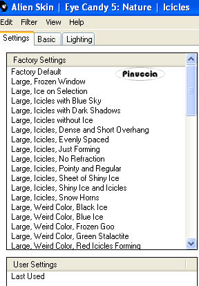 Effetti>Plugins>Alien skin Eye Candy 5 Nature - Icicles.