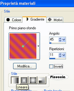 Riporta il colore iniziale a colore di primo piano e crea un gradiente con i seguenti settaggi:
