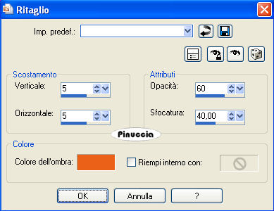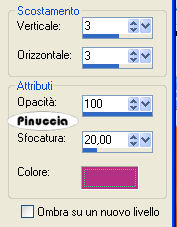 Effetti>effetti 3D>sfalsa ombra, con i seguenti settaggi, con il colore scuro: