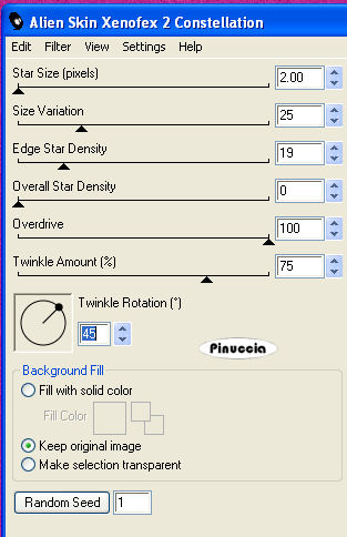 Ripeti l'Effetto Constellation, con gli stessi settaggi, ma cliccando una volta su Random Seed.