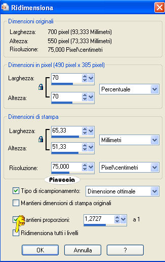 Immagine>Ridimensiona, al 70%, tutti i livelli non selezionato.