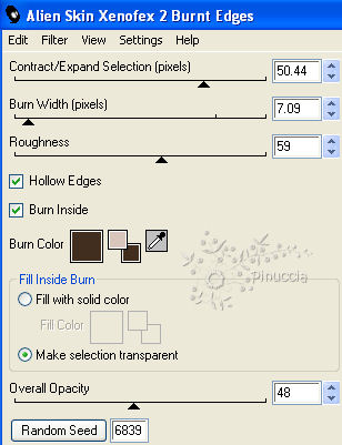Ripeti l'Effetto Burnt Edges con gli stessi settaggi, ma cliccando una volta su Random Seed.