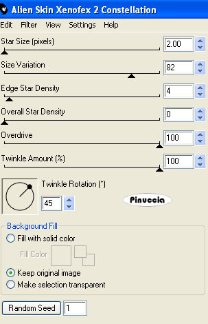 Ripeti l'Effetto Constellation, con gli stessi settaggi, ma cliccando una volta su Random Seed.