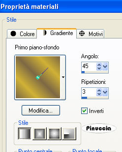 Scegli dai tuoi tubes due colori e imposta il colore chiaro come colore di primo piano (il mio #cfb136),