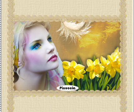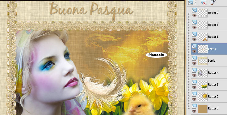 La piuma dovrebbe trovarsi ora al centro dell'immagine; per far sì che alla fine si trovi sotto il bordo, sposta il livello sopra il livello "bordo".