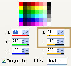 Scegli dai tuoi tubes due colori e imposta il colore chiaro come colore di primo piano (il mio #e6dbbb),