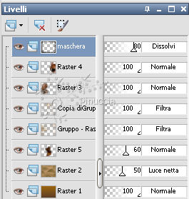 Cambia la modalità di miscelatura di questo livello in Filtra.