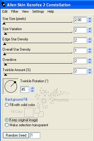 Ripeti l'Effetto Constellation, con gli stessi settaggi, ma cliccando una volta su Random Seed.