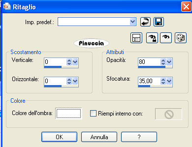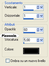 Effetti>Effetti 3D>Sfalsa ombra, con i seguenti settaggi, colore nero: