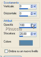 Effetti>Effetti 3D>Sfalsa ombra, con i seguenti settaggi, con il colore scuro: