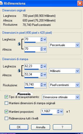 Immagine>Ridimensiona, al 70%, tutti i livelli non selezionato.