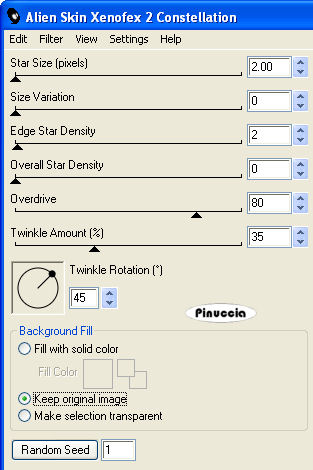 Ripeti l'Effetto Constellation, con gli stessi settaggi, ma cliccando una volta su Random Seed.