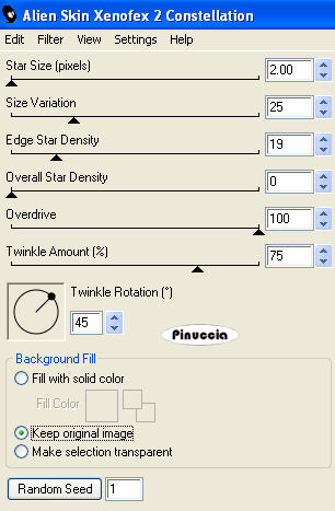 Ripeti l'Effetto Constellation, con gli stessi settaggi, ma cliccando una volta su Random Seed.